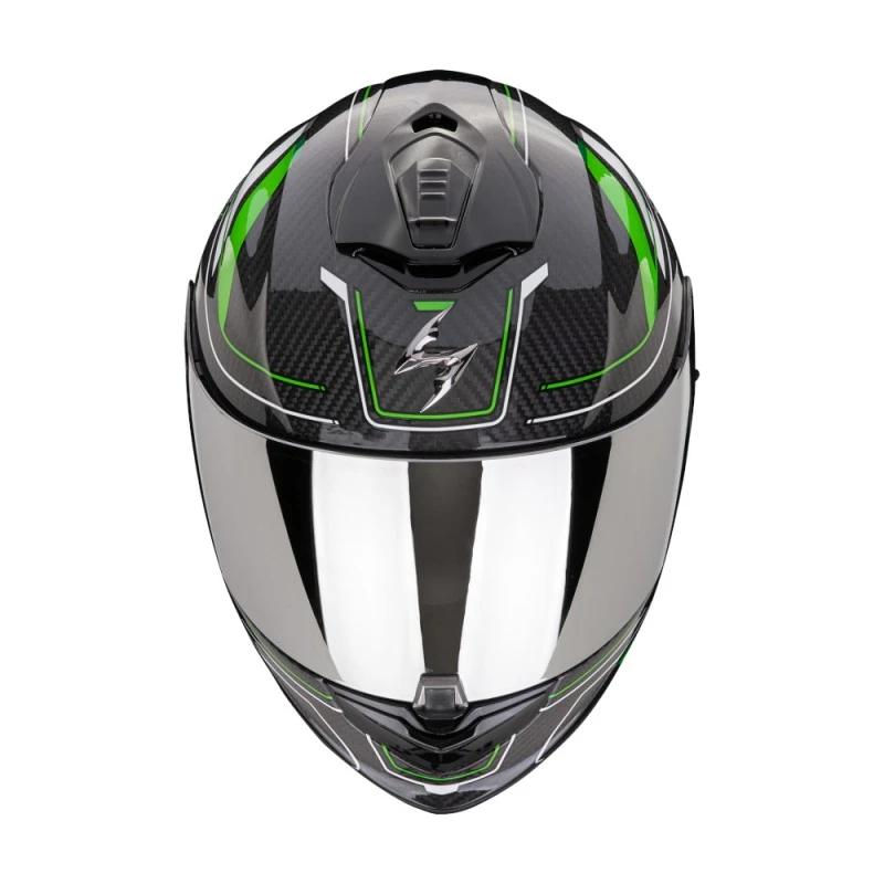 Casco integrale Touring Scorpion Exo-1400 EVO II Carbon Air Mirage studiato per l’utilizzo turistico. Realizzato in fibra di carbonio leggero e resistente che assorbe gli urti in caso di impatto.
